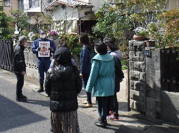 本訓練を開始する前に,指導を担当する消防職員が,訓練想定を記載した「現示カード」や「地域の集合場所」での実施事項を説明し,事前に町内の5箇所で火災や家屋倒壊が発生したことを伝え,40名を超える住民の皆さんが訓練を行いました。