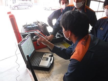 東山消防署では、令和2年3月13日、災害現場での指揮本部運営能力等の向上を図るため、指揮隊員教養を実施しました。教養内容は、指揮隊車積載の資器材取扱訓練、災害現場における指揮隊員の業務全般。現場指揮本部での情報収集及び効率的な災害現場状況確認表の記入方法等で、指揮隊の業務を代行する可能性のある署員等が、現役の指揮隊員による講義を受講しました。
