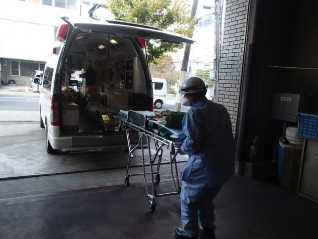 特別救急訓練とは,令和2年11月24日(火曜日)から6日間にわたり,市内の各救急隊が参加する訓練で,感染防止に留意した標準的な救急活動の習熟などを図り,救急隊の現場活動能力を向上させる目的で実施されます。