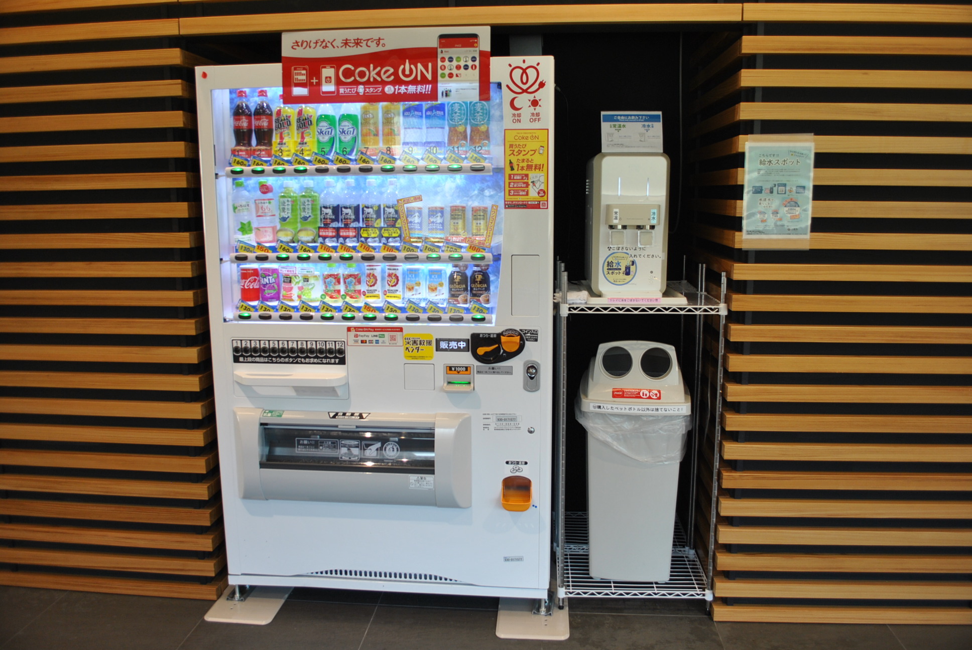 ※「給水スポット」浄水フィルターにより塩素を除去した水道水をマイボトルなどで御利用いただけます。