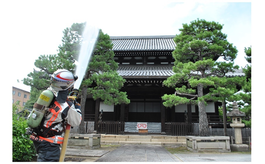 上京消防署は大切な文化財を火災から守るため、文化財を有する社寺、地元自主防災会と連携し、万全を期しています。