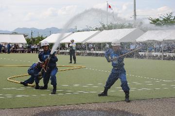 中京区からは柳池分団(浅井分団長以下16名)が出場し、消防団の力強さを来場者にアピールするとともに、この訓練を通して強くなった団結力を活かして、より地域防火防災への取組を推進する意思が一つにすることができました。