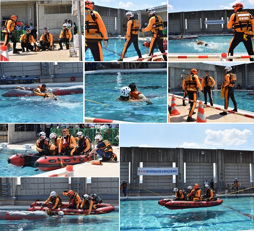 技術訓練の向上、新しい資器材の導入等を目的とし、東近畿地区から一堂に会する消防救助隊員の発表の場として、水上の部で京都市消防局の訓練を実施しました。