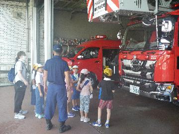 中京消防署では、児童の夏休み期間中、特別企画として、中京区内の児童館を対象に中京消防署見学ツアーを開催しました。当日は、約2時間の見学ツアーを児童の皆さんに体験してもらいました。