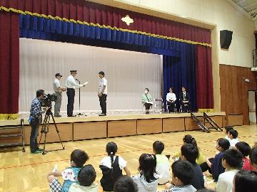 小学校の先生と地域ボランティアさんに署長感謝状を贈呈しました。