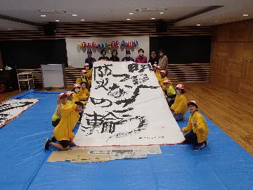 北ジュニア消防団では、毎年11月の集合研修において、全員で防火の標語を決めて、リレー書を実施しています。リレー書の他にも、防火広報媒体として防火ちょうちんと防火のしおりを作製しました。初めて参加したジュニア消防団員は筆と半紙の大きさにびっくり!一人一人が力強い筆さばきで、見事な仕上がりとなりました。