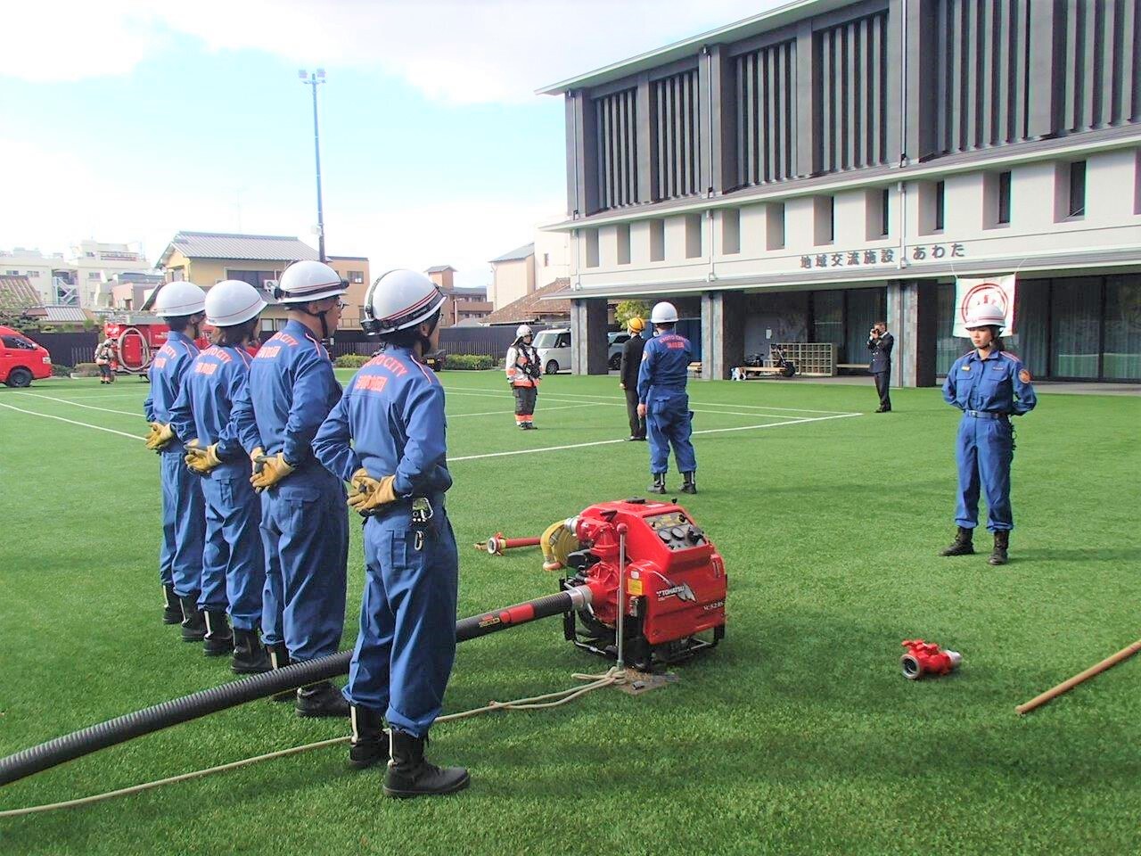 粟田分団が合同消防訓練にて放水活動を実施!