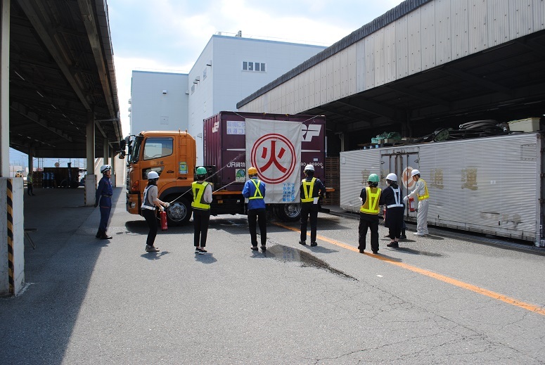 ※梅小路洛友会は、京都貨物駅及び京都貨物駅を利用する事業者で組織され、同駅における鉄道貨物輸送及び会員事業者の維持発展等を目的とした互助団体です。屋内消火栓で初期消火