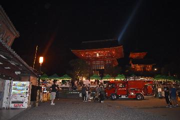 この「清水さんの秋まつり」は、災害時に清水地域の住民の一時避難場所にもなる清水寺さんが、コロナ禍から明けて、地域の連帯感を強くするために開催されたお祭りです。普段は多くの外国人観光客などで賑わう清水寺ですが、この夜は、知った顔の清水地域のみなさんのみが、地域のお店や実行委員会で出店された露店での飲食やゲームを楽しんでおられました。