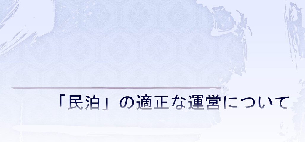 宿泊施設における防火管理及び出火防止対策、その他民泊等の運営に係る留意事項等についての動画を、宿泊施設関係者の方にご覧いただくことで、さらなる防火安全の向上及び適正な運営をしていただくことを目的とした研修です。