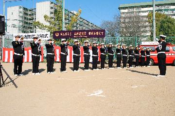 出初式は、分団、団員活動に対する表彰式も兼ねており、京都市総合査閲第4位の大宅分団の市長表彰をはじめ、永年勤続表彰等、多くの表彰を行いました。そして、これを機に、山科区の防火・防災に取り組む決意を新たにしました。