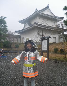 演奏会場の隣では、防火服着装体験コーナーや消火器取扱体験コーナーを設けました。