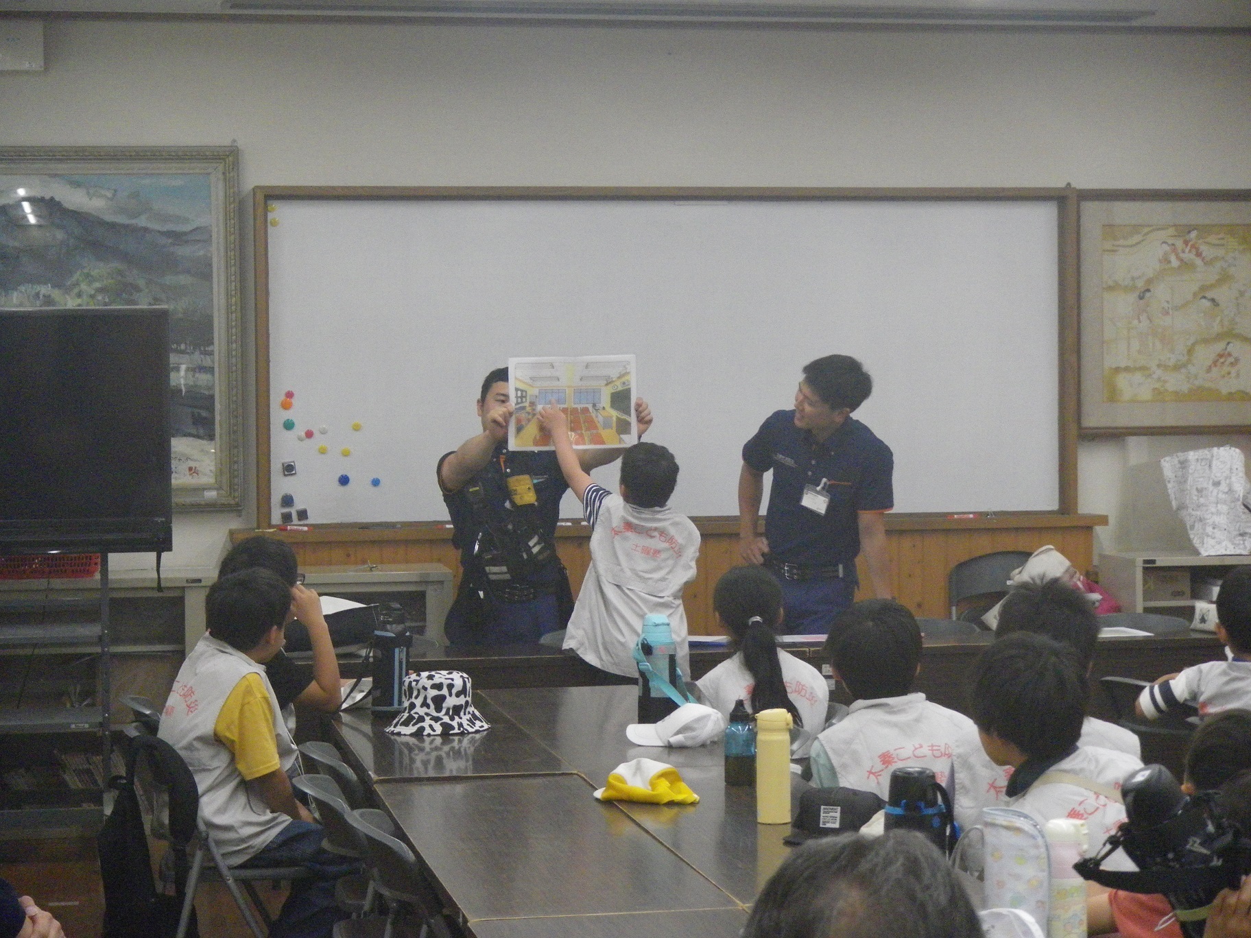 入塾式に参加した1年生から6年生までの計28人の子供たちは、地震が起こったときに教室で危険となる所や地震発生直後の行動、収まってからの行動を勉強し、起震車による地震体験で学習した内容をおさらいしました。