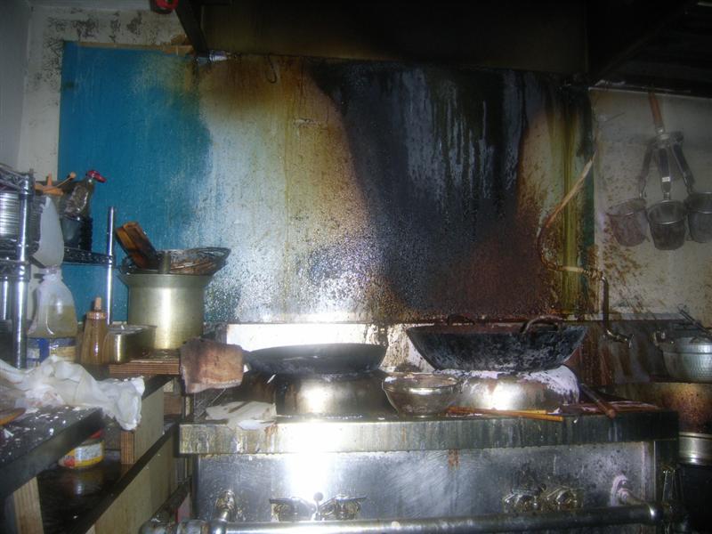 ・焼肉店において、無煙ロースターで肉を調理中に火の付いた油等がダクト内に吸い込まれ、ダクト内に堆積していた油脂等に着火し燃焼拡大した。