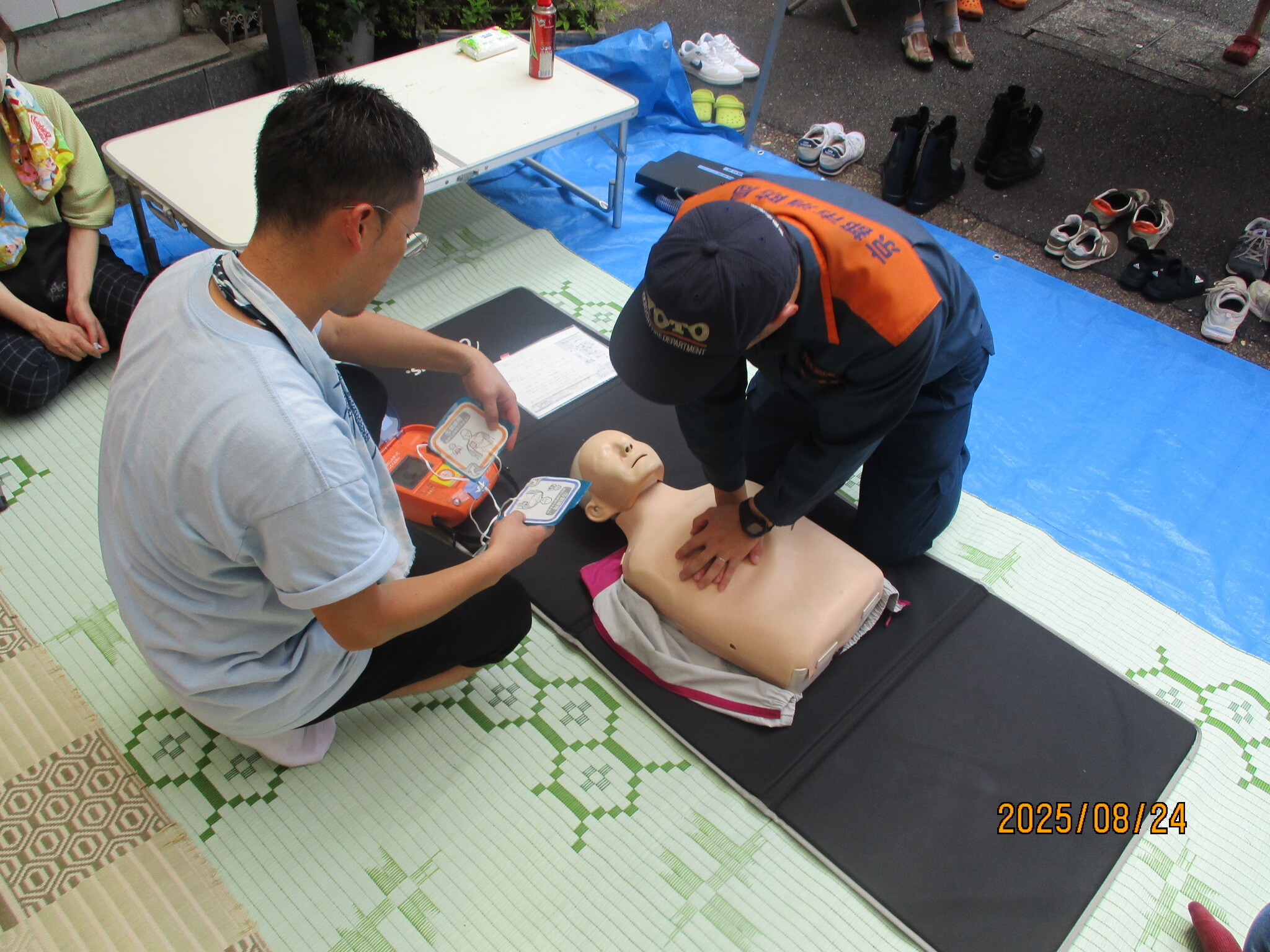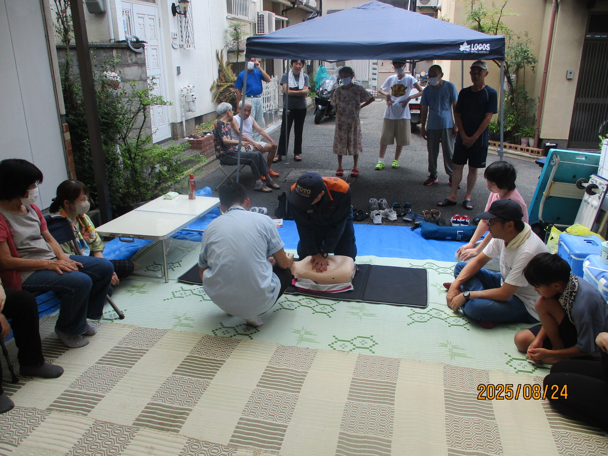 令和7年8月24日(日曜日)、九条学区の川原城町第二自主防災部で『地域発災型訓練』を実施しました。