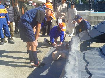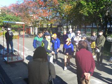 桂川班及び松尾班は合同で、11月16日(日曜日)に桂川小学校で実施された桂川学区総合防災訓練を見学しました。