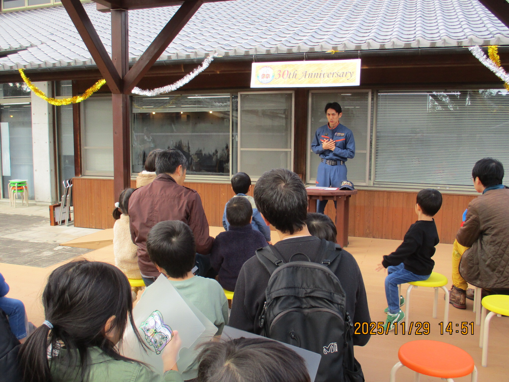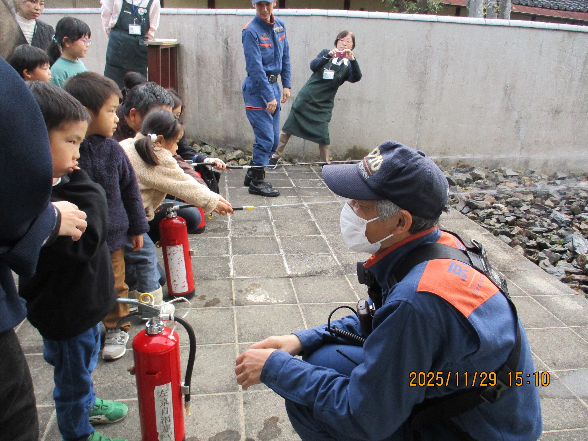 最後に消防車の見学と防火服を着て重さを体験してもらいました。子供たちも楽しんでくれて1時間のイベントを終了しました。