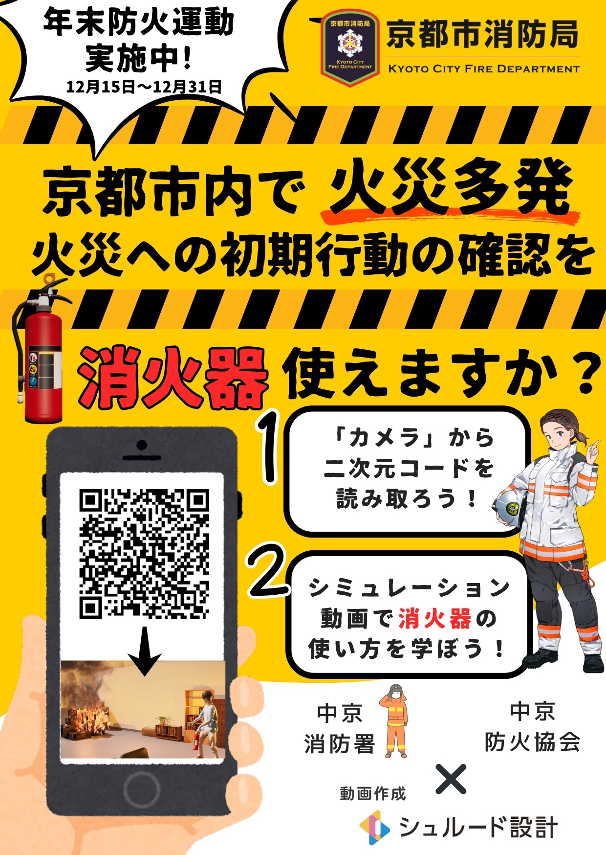 中京消防署では、令和7年年末防火運動の取組として中京消防団、京都錦市場商店街振興組合と合同で「京の台所」である京都錦市場商店街で防火啓発広報を実施しました。