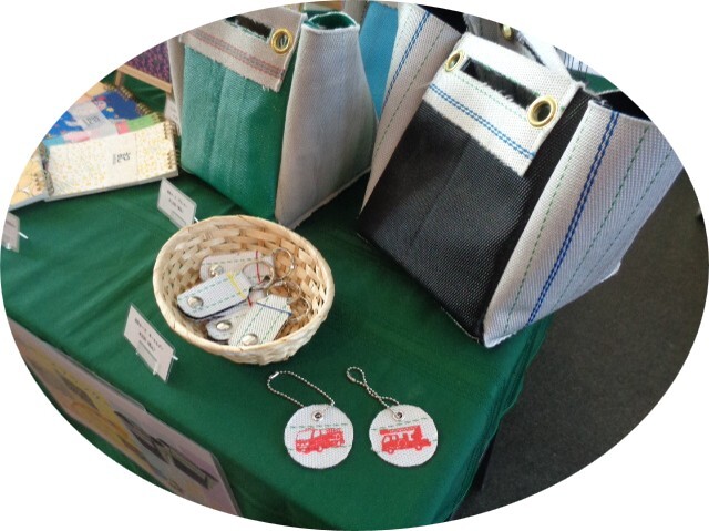 キーホルダーは、消防ホースで雑貨を製作されている事業所に、御協力をいただきました。