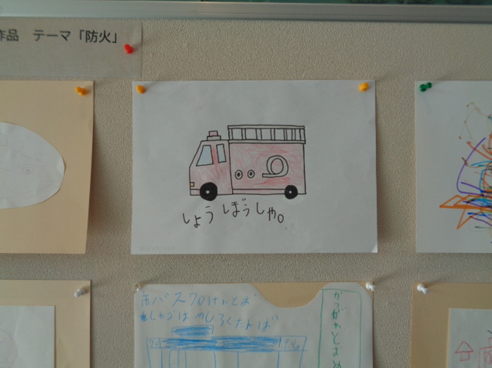 各事業所を利用される方々に、消防車の絵などを描いていただき、展示会を行いました。