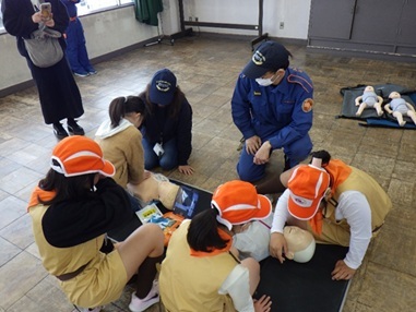 AEDの使用方法を学びました。