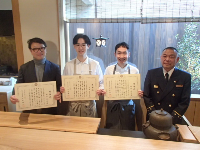 令和8年3月24日 (火曜日)、左京消防署(署長 中原 謙二)では、飲食店において救命処置を行っていただいた従業員のみなさまに、署長感謝状を贈呈しました。
