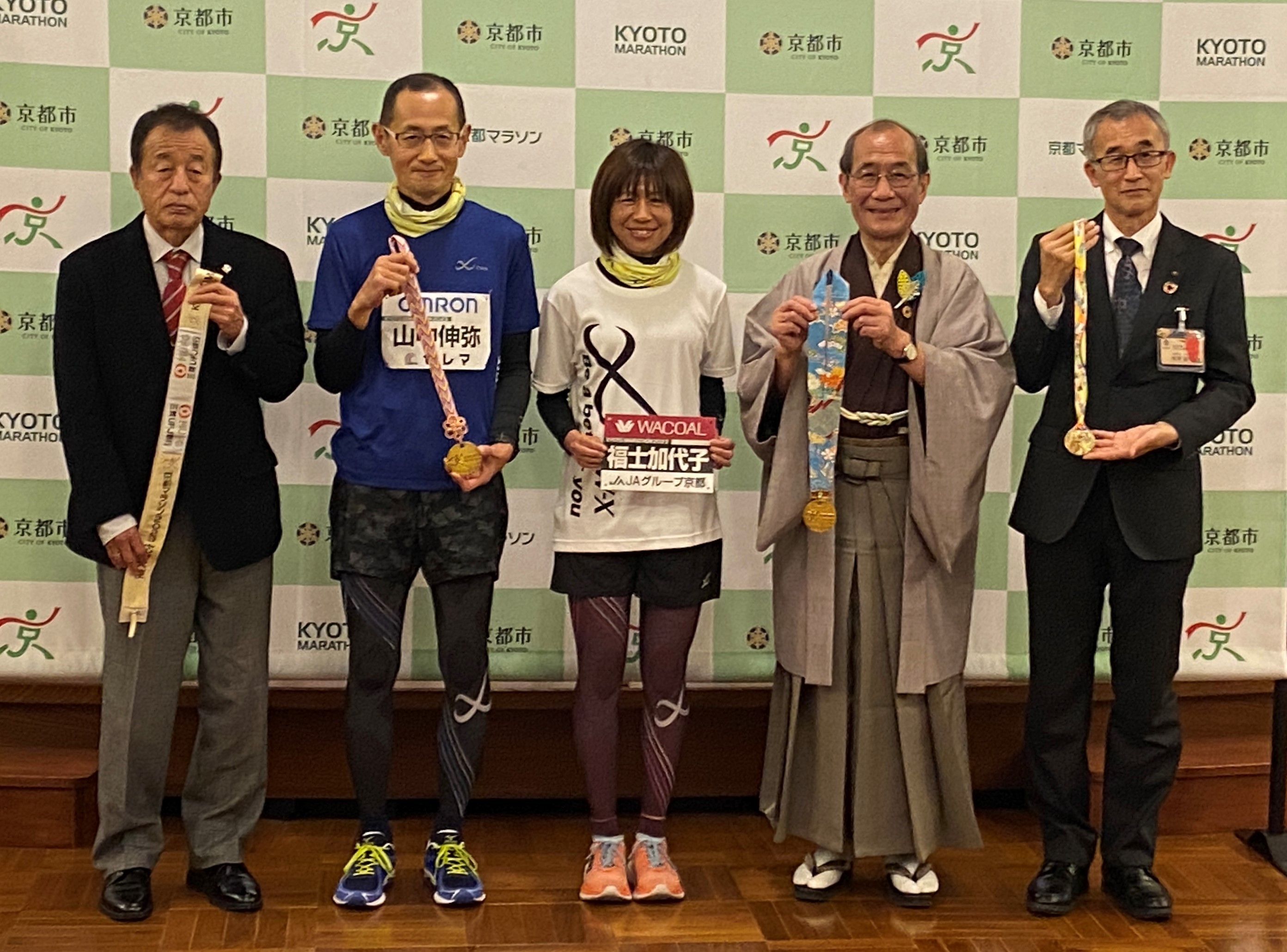 まず、山中先生ありがとうございます。オンラインも含め今までに11回も京都マラソンに参加いただきました。京都マラソンと言えば山中先生。先生は京都マラソンでIPS細胞に関わる寄付を集められておられます。山中先生が素晴らしい走りをされると、IPS細胞の研究が進み、未来の進歩につながるという、京都マラソンを活用された素晴らしい取組を行っておられます。
