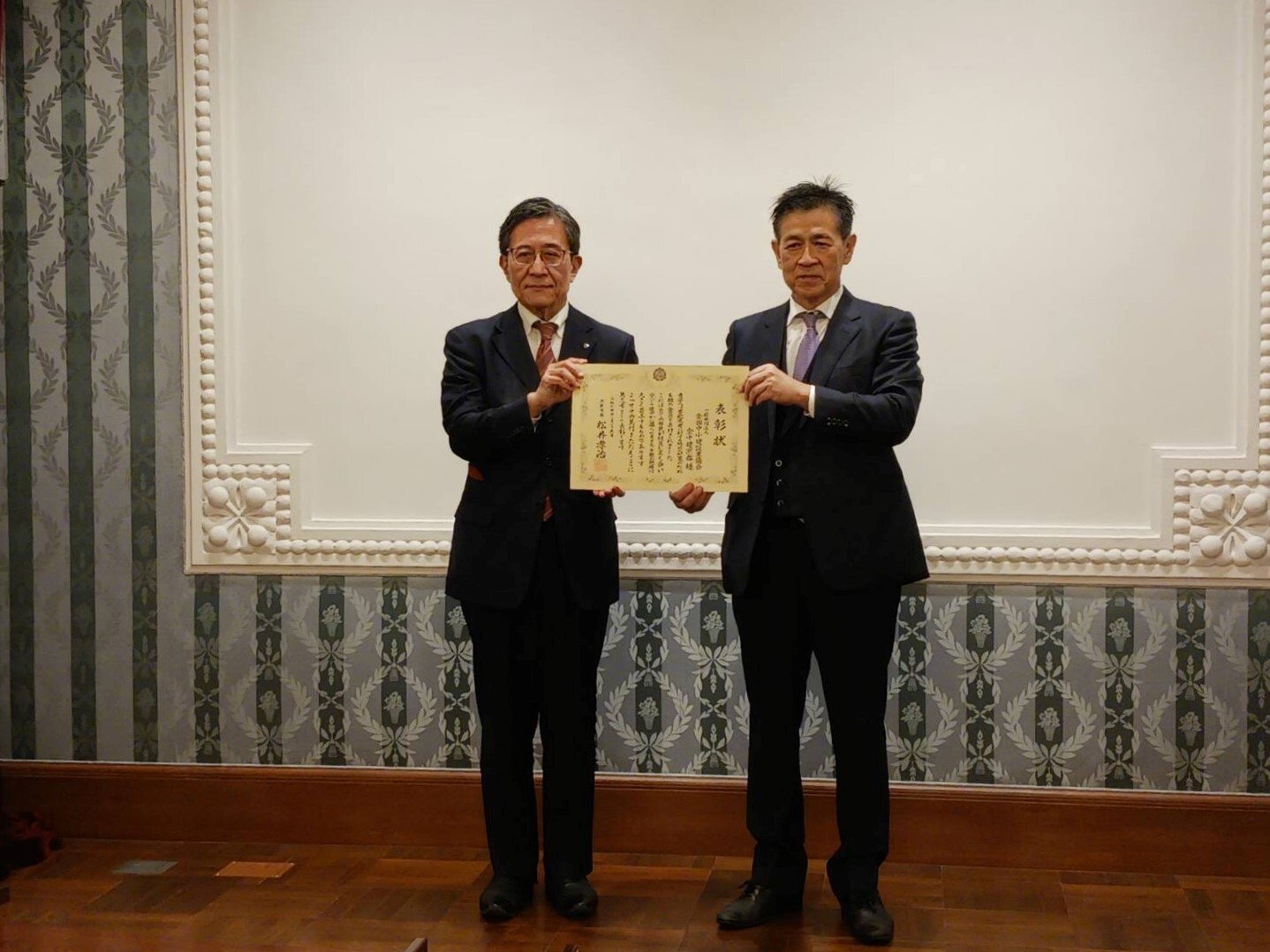 学生向けの不動産賃貸業を展開される株式会社ジェイ・エス・ビーの代表取締役社長 近藤雅彦様と取締役の山本貴紀様がお越しになり、産学連携推進のための寄付をいただき、感謝状をお贈りしました。