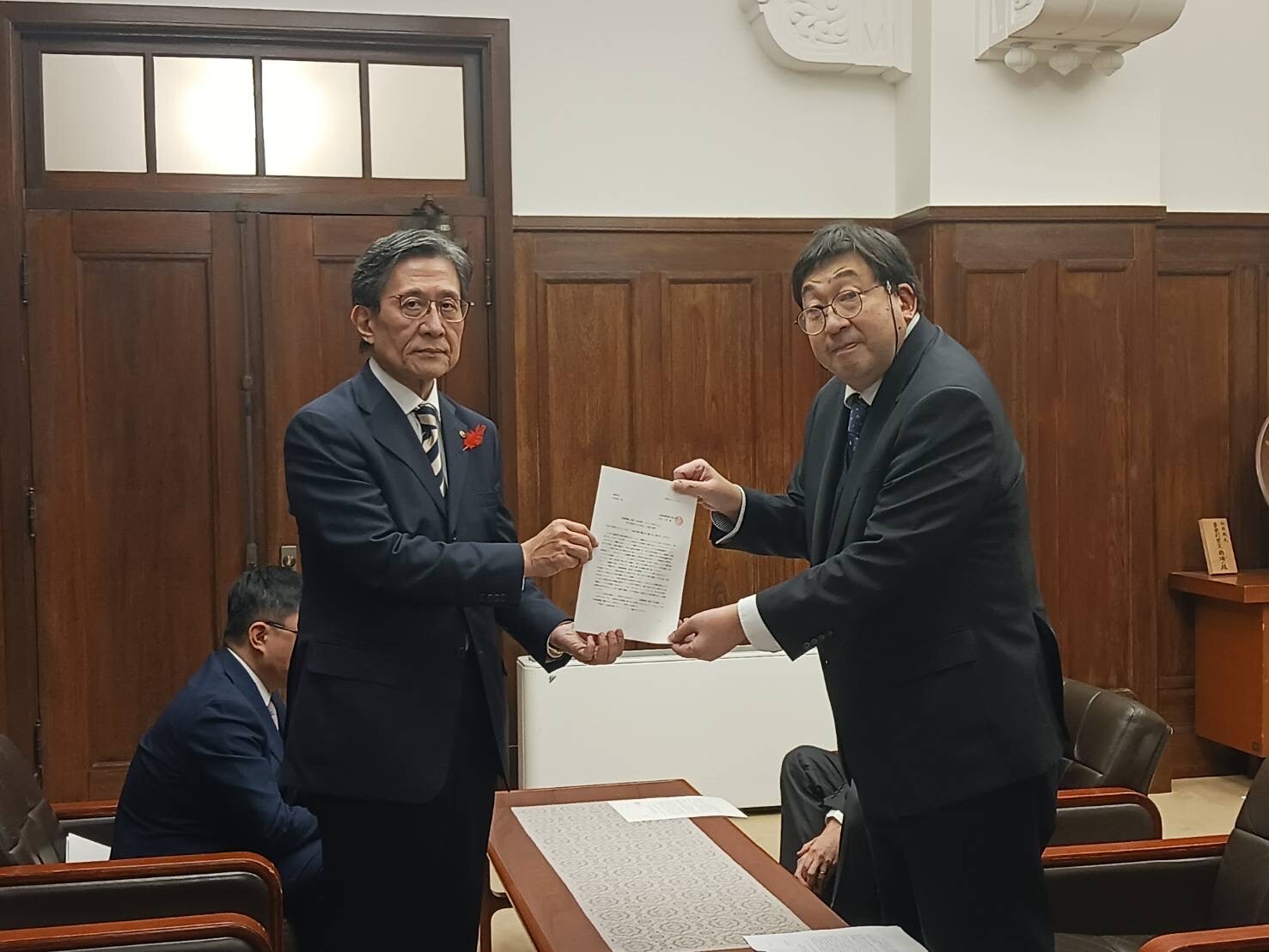 京都仏教会の宮城泰年常務理事、長澤香静事務局長、長澤靜敬事業部長、宗教と社会研究実践センターの田中滋主任研究員から、北陸新幹線延伸計画に関する申し入れをいただきました。
