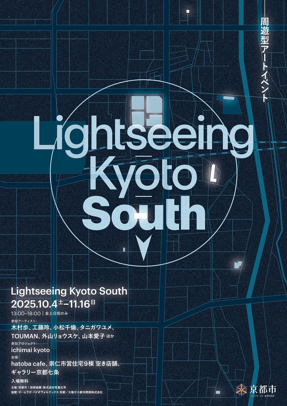 京都市では、京都駅東部・東南部エリアを舞台に、京都で活動する若手アーティスト・キュレーターによる作品展示やワークショップなど、エリア一帯で文化芸術が楽しめる周遊型アートイベント「Lightseeing Kyoto South」を開催します。