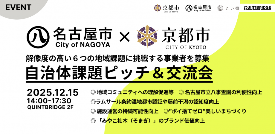 12/15開催【名古屋市×京都市】「解像度の高い地域課題に挑戦 自治体課題ピッチ&交流会」の参加事業者を募集します!