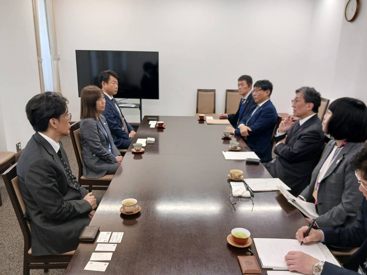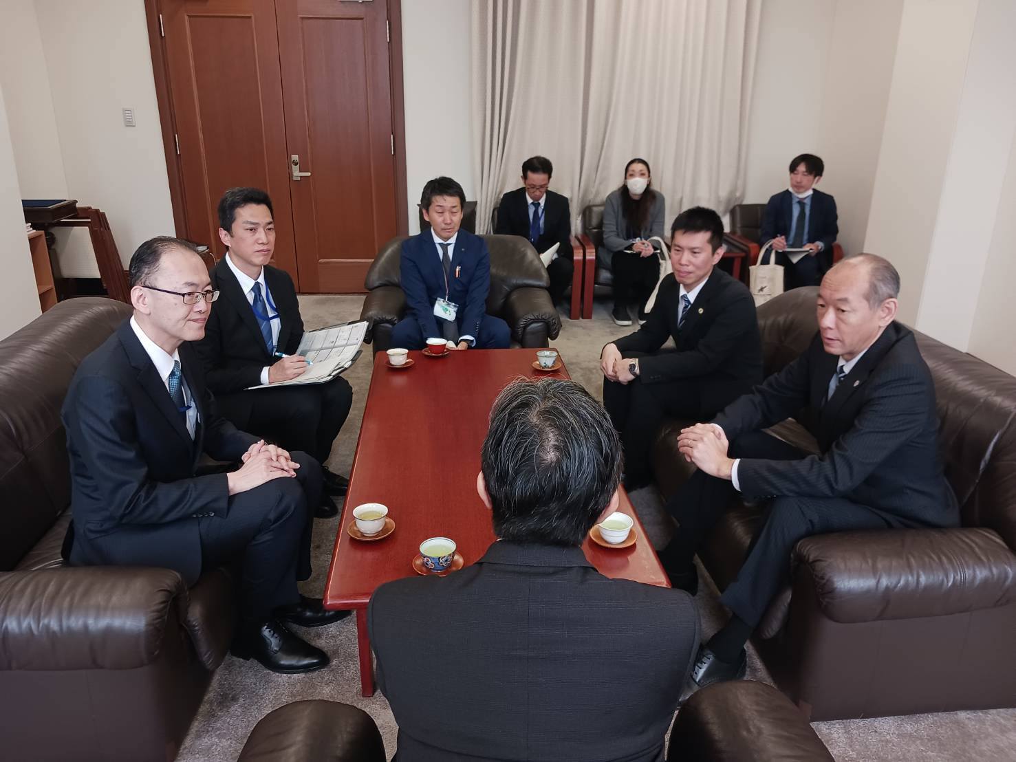 京都市会海外行政調査団の吉田孝雄団長、寺田一博副団長、久保田正紀副団長をはじめとする皆様からの緊急提言をお受けしました。