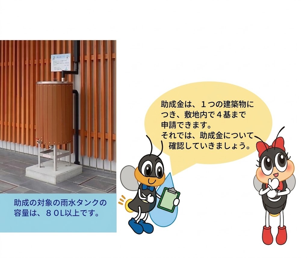 ※ 過去に助成を受けられた方でも、累計4基以内であれば新たに別の雨水貯留タンク等を設置される場合、
