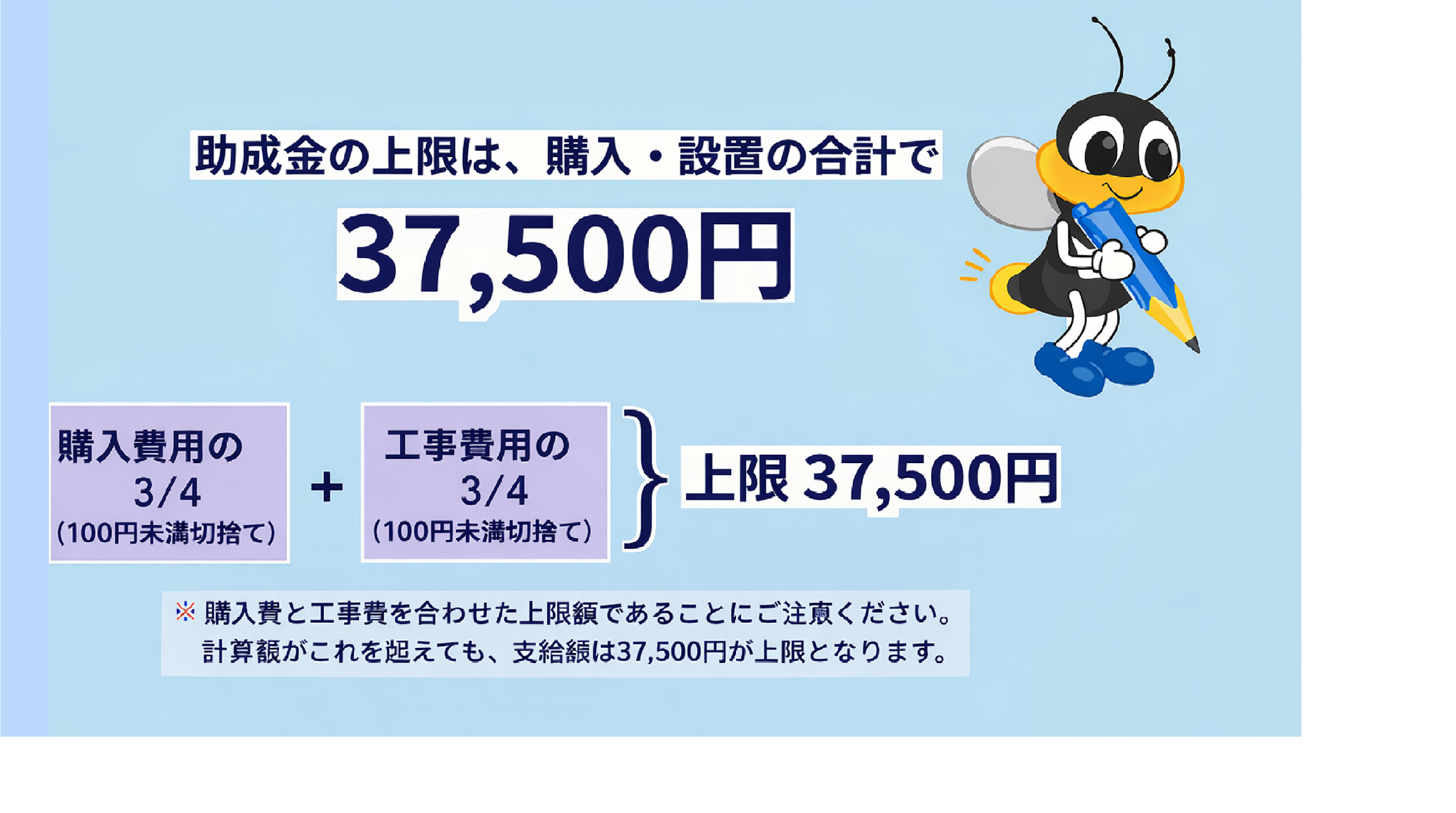 ※上限37,500円 (ただし、設置工事費用の助成は上限10,000円。)