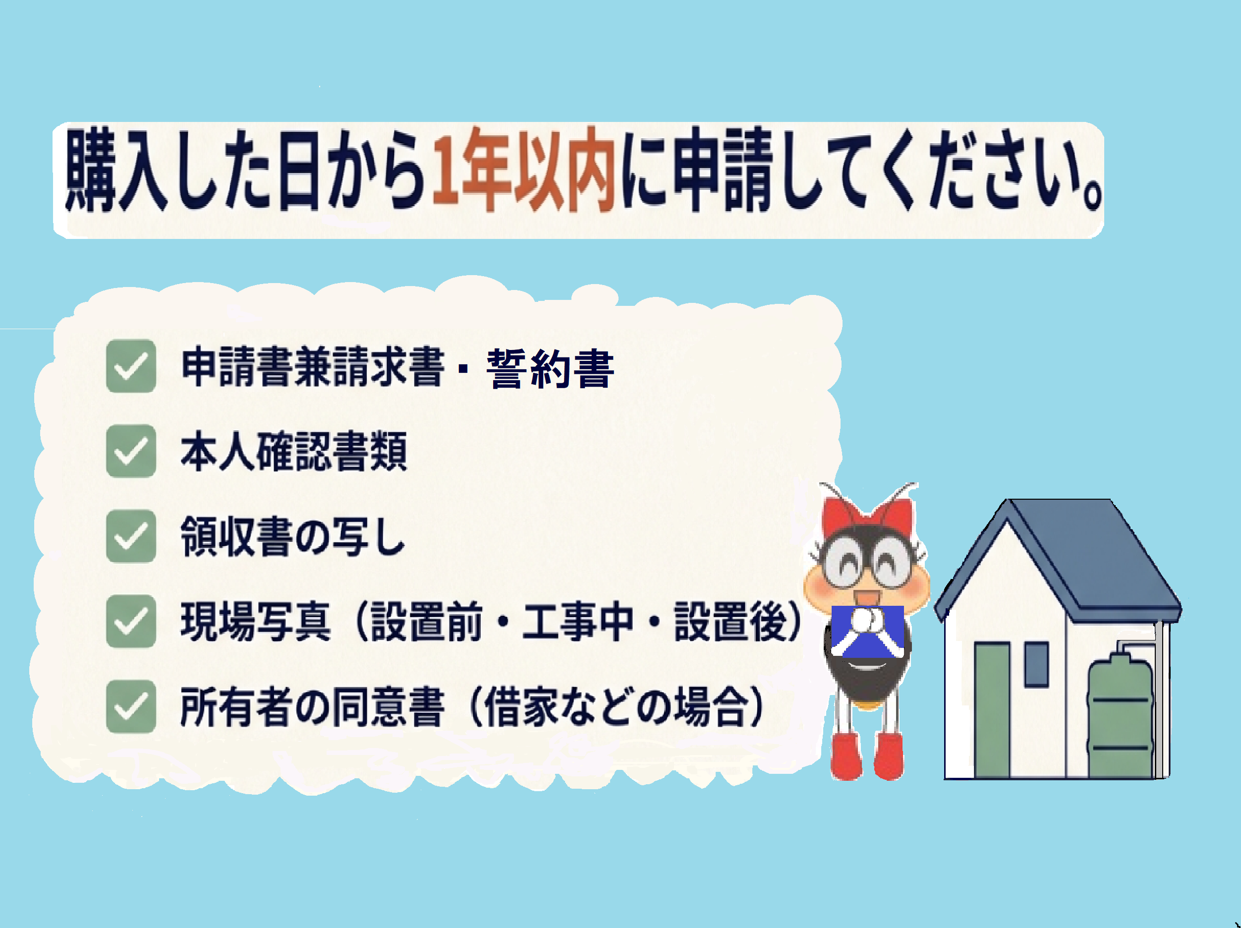 ※ 申請書等は購入した日から1年以内に提出してください。