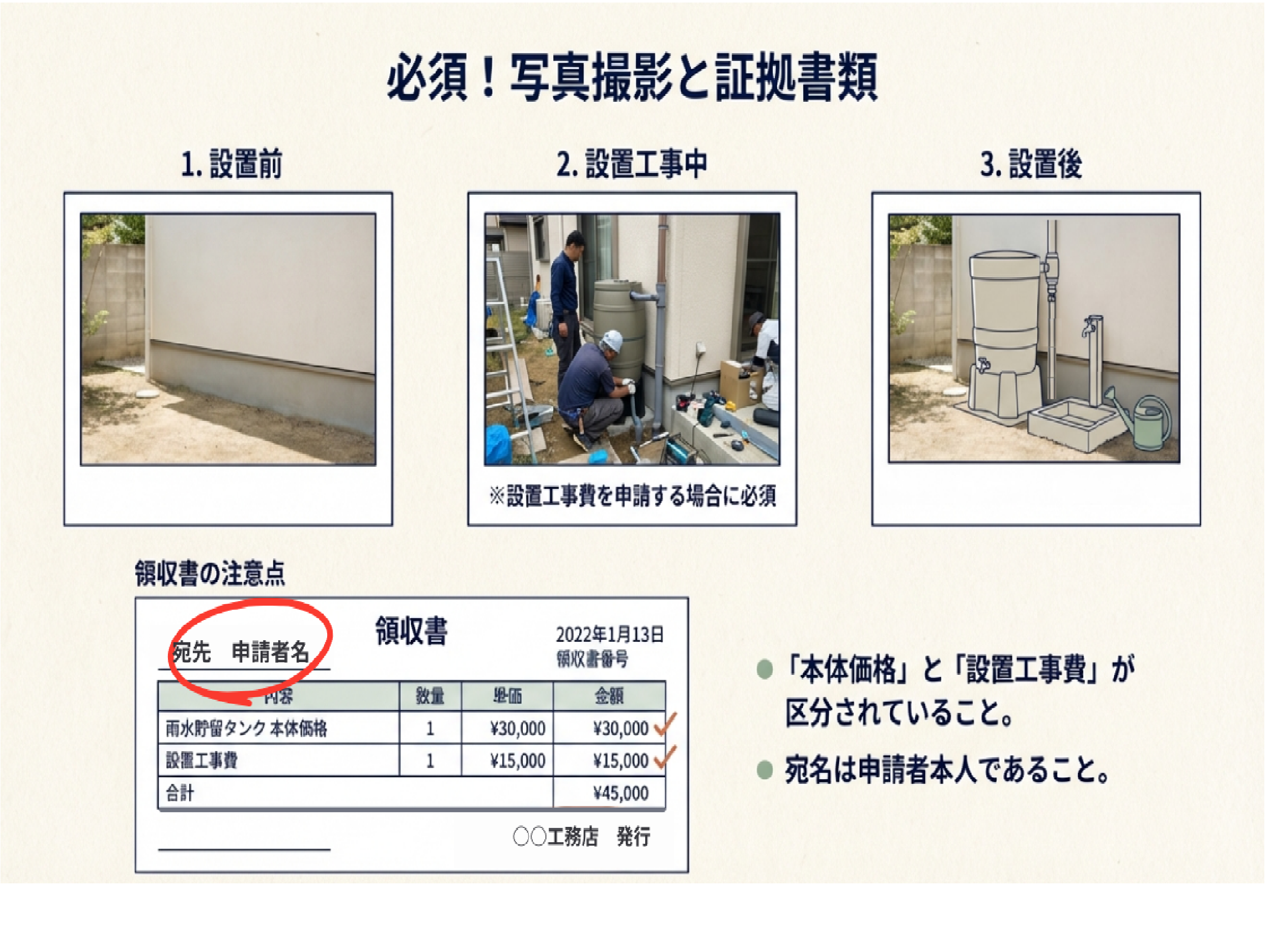 設置前・設置後の写真の撮り忘れにご注意ください。