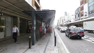 京都市では、夏の暑さ対策やヒートアイランド対策などに効果のあるミスト装置を市内の市バスのりば等に設置し、快適にバスやタクシーをお待ちいただける環境をつくっています。