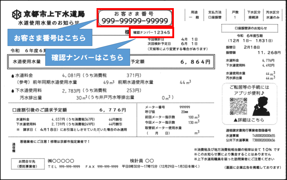 【京都市上下水道局アプリ】お客さま番号と確認ナンバーについて