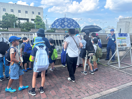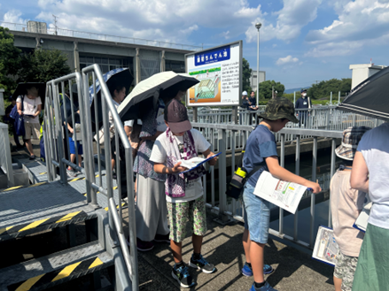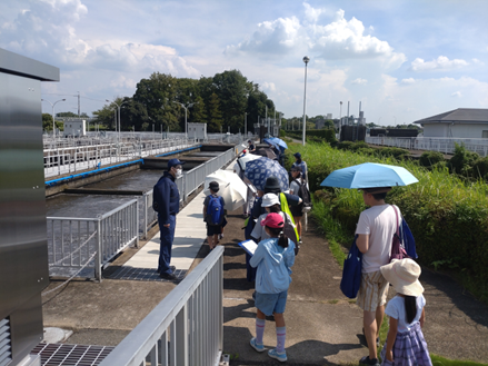 PRチーム員による解説をまじえ、沈砂池からポンプ場、最初沈殿池、反応タンク、最終沈殿池、塩素接触タンクと水処理の過程を見学していただきました。