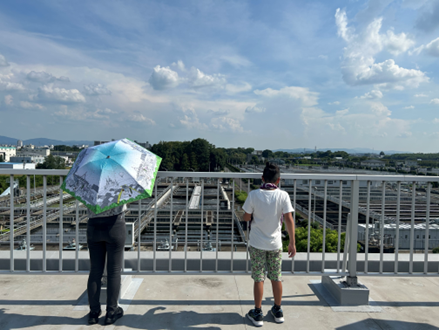 建物の屋上で下水処理を背景に写真撮影も行いました。