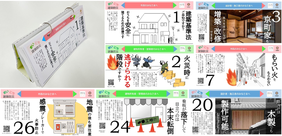 本市では、市民や事業者の皆さまに、建築物に関する法令・制度や防災の知識等について分かりやすくお伝えするため、親しみやすい標語と写真・イラストを用いた建築安全カレンダー「まいにち 建築防災」を作成しています。カレンダーは簡単に組立られますので、是非御活用ください。