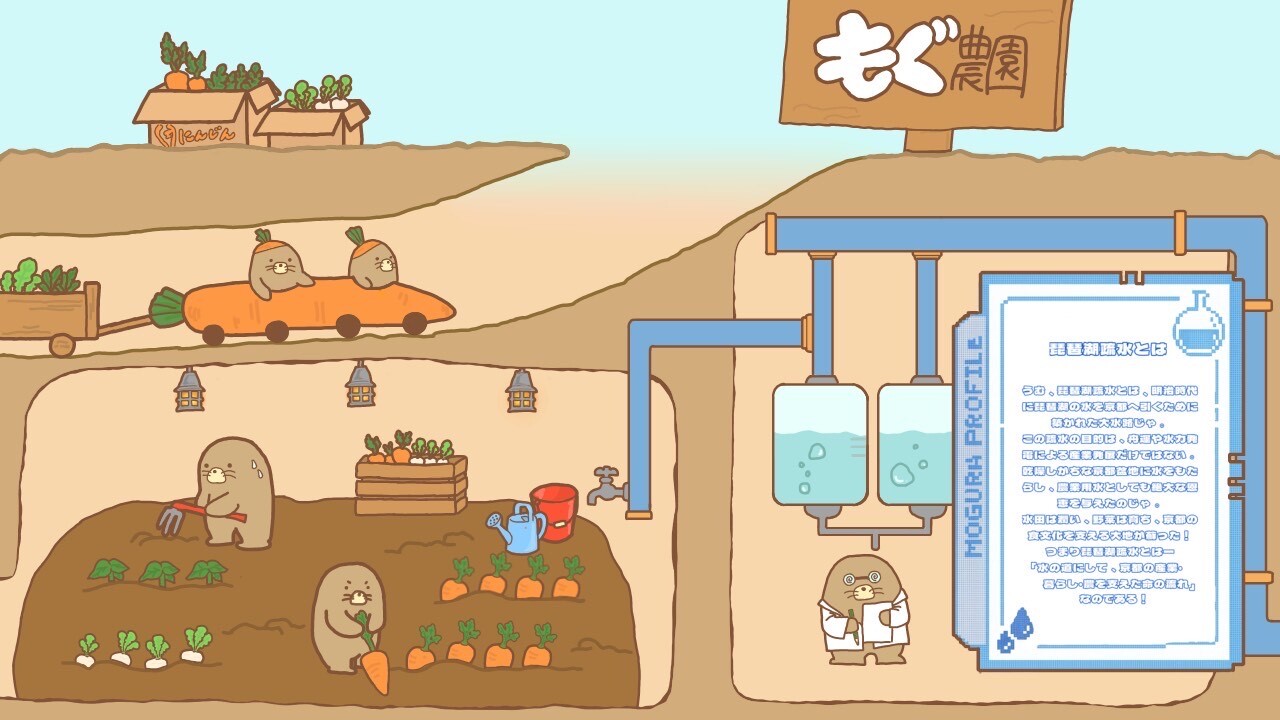 地下道にちなんだ「もぐら」が京野菜の魅力を伝える世界をデザインし、にぎわいのある楽しい空間を演出しました。