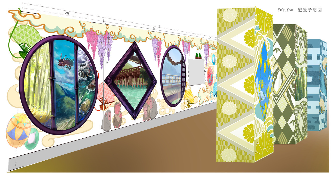 この度、京都市内の大学でアートやデザインを学ぶ学生グループ6組が、歩いて楽しめる空間を創出するため、地下道の壁や柱に、アート作品を制作・展示します。