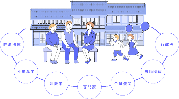 京都市をはじめ、京町家等の継承に関わる多くの専門職能団体、市民団体、公的機関が参画している協働ネットワークです。
