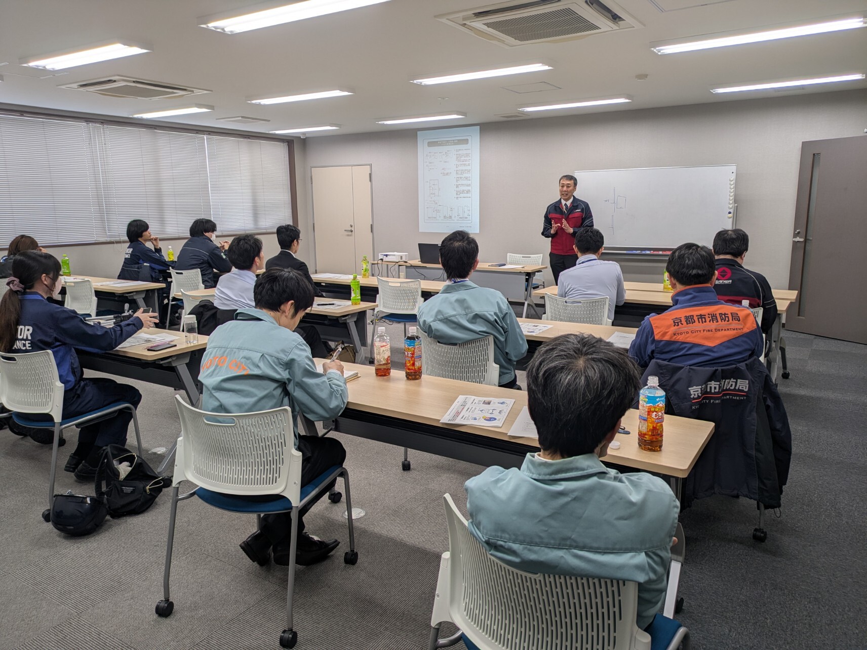 この度、三和エレベータサービス株式会社の主催で、消防隊をはじめエレベーター保守や建物管理をされている方を対象とした合同研修会を開催しました。本研修会では、エレベーターの構造や発災時の閉じ込め救出方法等を説明していただき、試験機でのデモンストレーションを体験していただきました。